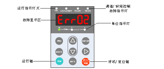 Err02 加速過(guò)電流 變頻器輸出回路存在接地或短路 排除外圍故障,檢測(cè)電機(jī)或接觸器是否短路