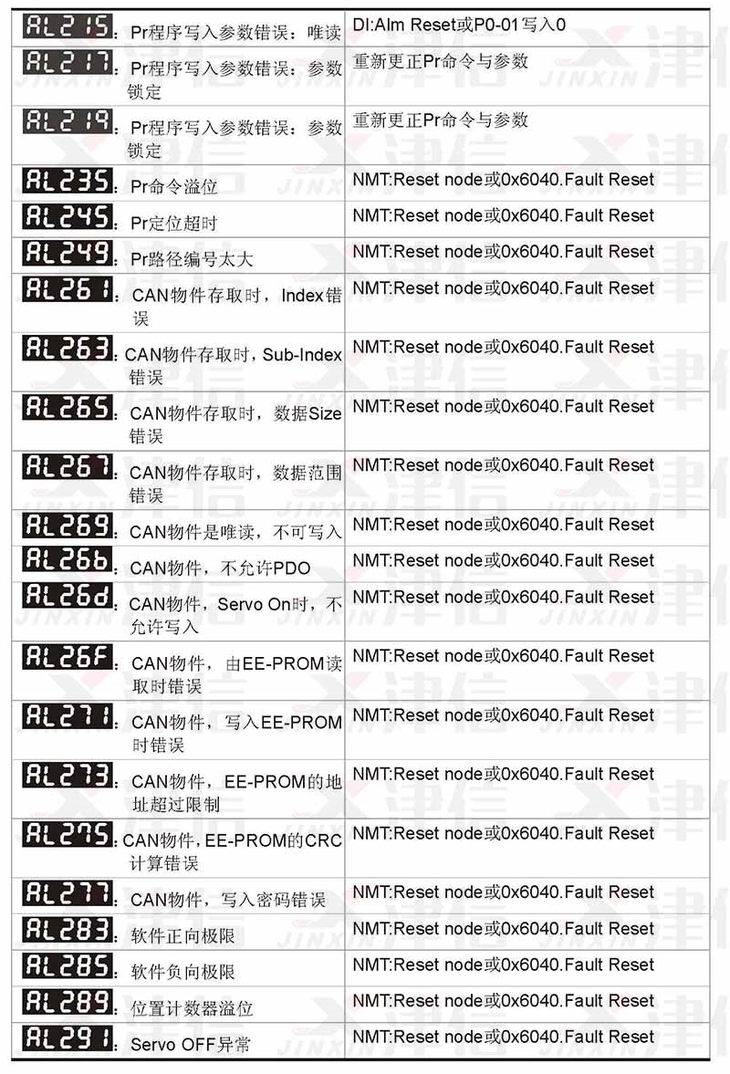 四、AL301,AL302,AL303,AL304,AL305,AL380故障代碼