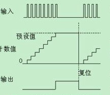 計數器的工作時序圖如圖二,當產品數量計數到達預設值時,計數器數字量輸出信號動作,中止主機運行。等用戶將計數器復位以后,主機又可以再次運行。
