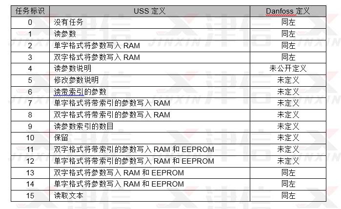 S7-200 USS4通訊子程序中用到的任務(wù)標(biāo)識與Danfoss的定義相同。