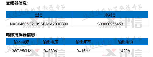 客戶公司原使用湖南某電氣公司提供的電磁攪拌逆變電源,因使用過程中經(jīng)常報警,現(xiàn)上海津信幫助客戶改用偉肯變頻器作為電磁攪拌的驅動裝置的方案。